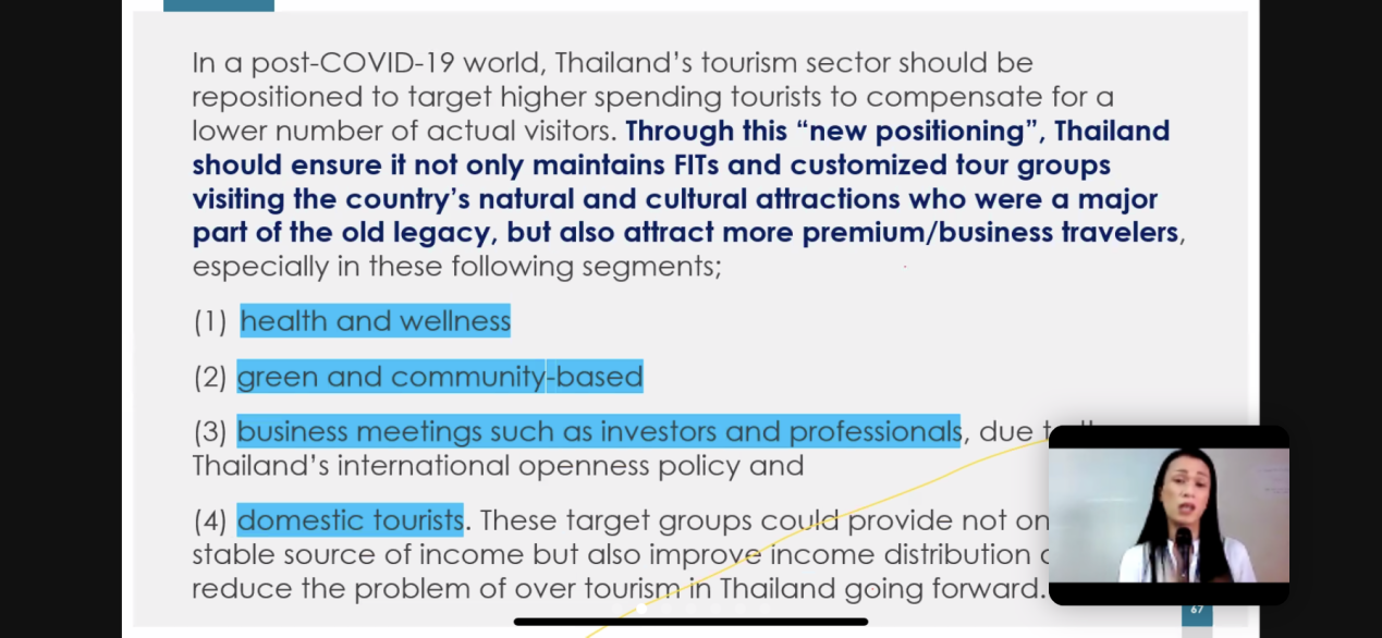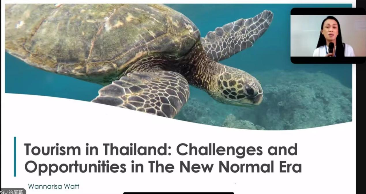 Wannarisa老师在泰国宋卡王子大学酒店及旅游产业学院担任本科教学,其教学及研究领域为邮轮旅游管理、全域旅游管理。该老师精通英语与德语,在加入宋卡王子大学酒店及旅游产业学院之前,具有20多年的丰富的国际旅游业从业经验。虽然很多同学们还没机会出国,但通过两院开展的“云课堂”系列交流活动,让足不出户的同学们也有机会无国界学习、掌上看世界。本月21日同一时间,泰方还会由另外一名老师带来有关“新常态泰国酒店业的挑战与机遇(Hospitality in Thailand:Challenges and Opportunities in the New Normal Era)”的主题分享。
