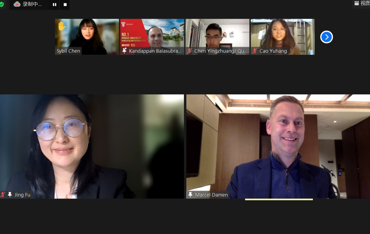 本次访谈由两院副教授Kandappan Balasubramanian博士与付静博士主持。两位主持人首先简介了各自的城市、学校及学院,接着隆重介绍了嘉宾Marcel Damen先生。访谈围绕着酒店业总经理的视野、责任、战略及领导力展开,结合Damen先生28年来在全球各地国际一流酒店任职的经验,从不同的角度探讨了疫情下酒店业面临的挑战与机遇,变革与创新。