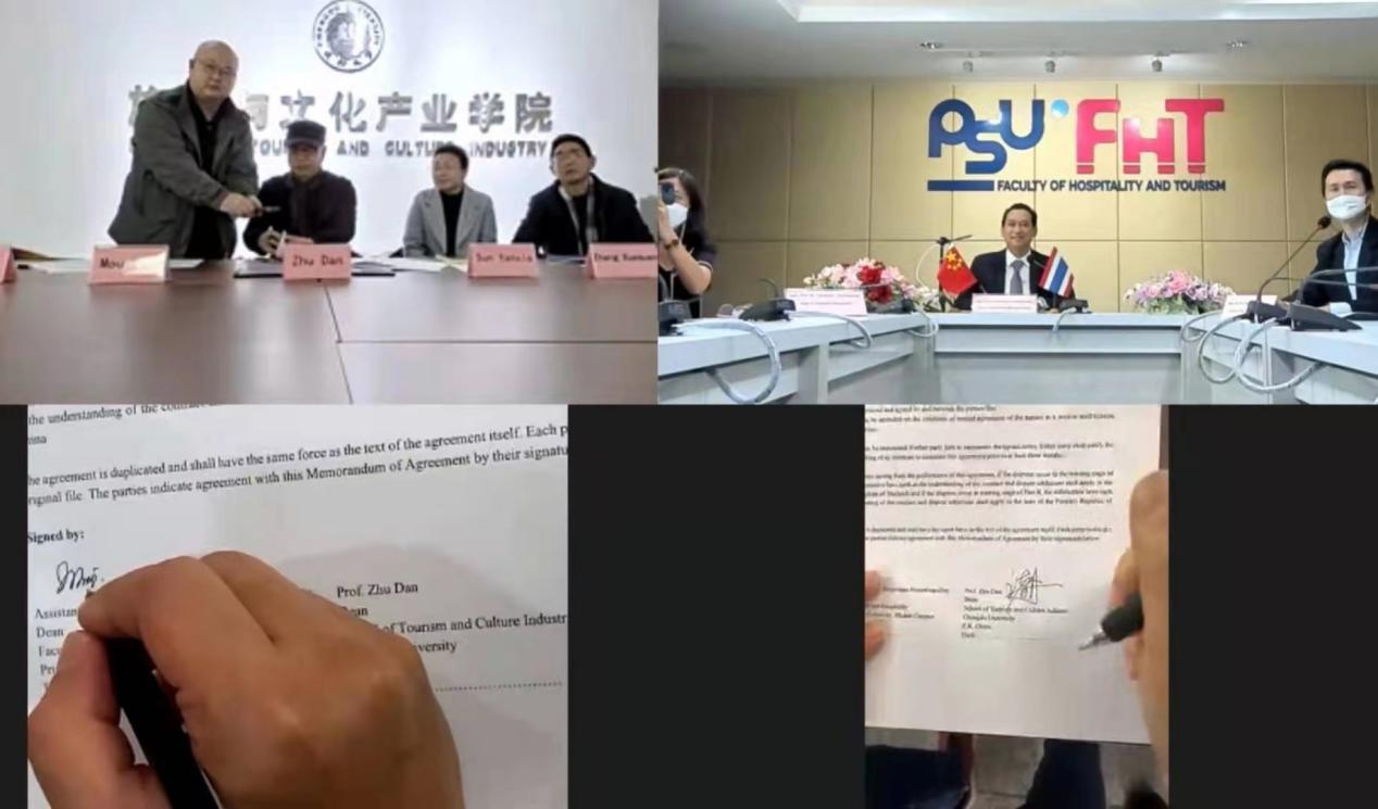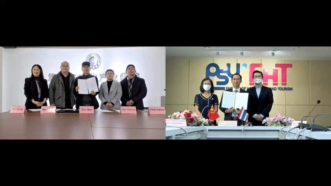 与泰国宋卡王子大学酒店及旅游产业学院(Faculty of Hospitality and Tourism,以下简称FHT学院)院级合作协议云签约仪式顺利举行。成人抖音