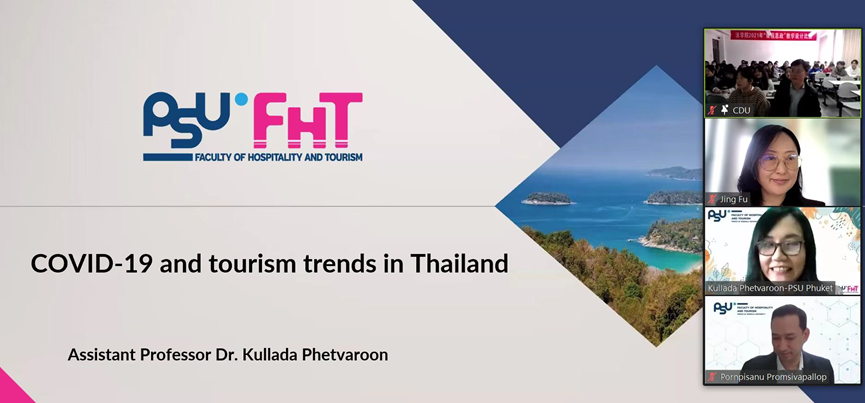 院长助理万春林老师首先代表学院对所有参会师生表达了欢迎,并表示希望以此次论坛为契机,双方建立常态化交流机制,开展更丰富的学术活动。随后,泰方旅游管理系系主任Kullada Phetvaroom博士做了关于“COVID-19 and Tourism Trends in Thailand”的主题发言,介绍了新冠疫情对泰国旅游经济的冲击,以及吉普岛沙盒计划(Sand Box) 及其旅游发展的未来趋势。成人抖音