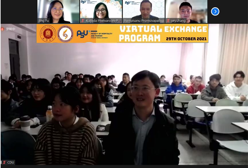 与泰国宋卡王子大学酒店及旅游产业学院共同举办了一场院际互动云端论坛(Virtual Exchange,以下简称云端论坛)。