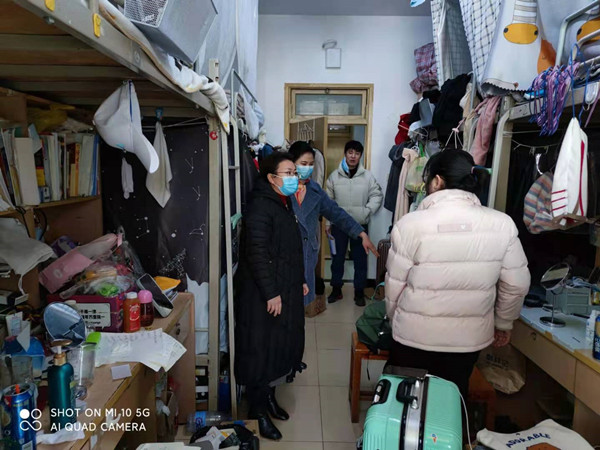 由于近期为期末考试周,在走访过程中,老师们进一步了解学生学习、复习情况并再次加强学生们的诚信考试教育。部分考试已结束的学生在宿舍打包整理,老师们提醒学生做好宿舍用电用水安全,叮嘱学生做好回家途中的安全防护及假期中防疫防盗防骗等安全。