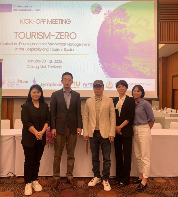 获欧盟资助的“伊拉斯谟+-旅游及酒店业零废弃物管理课程体系研究项目,简称‘无废旅游’(Erasmus+Tourism Zero-Curriculum Development for Zero Wast Management in the Hospitality and Tourism Sector)”的启动仪式,与来自希腊、西班牙、中国、泰国、老挝五个国家的十所高校及行业研究伙伴共同探讨如何培养国际化的绿色文旅人才,助力“无废城市”发展。
