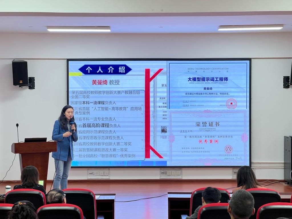 于10月28日在4103B成功举办了以“生成式人工智能下的教与学”为主题的教育教学专题讲座,由黄曼绮教授为全院教师带来了一场内容前沿、实践性强的教学分享,现场气氛热烈,教师们积极参与。
