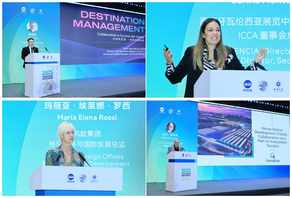 搭建高层次国际学术交流平台的成功典范。ICCA首席执行官森希尔·戈皮纳斯、西班牙瓦伦西亚展览中心总监卡琳娜·蒙塔古特、马来西亚砂拉越会议局代表陈振富、凯旋集团总监玛丽亚·埃莱娜·罗西、GainingEdge国际咨询公司顾问马克·施洛瑟等国际顶尖行业领袖应邀出席,并发表主题演讲并参与互动。这些重量级嘉宾的参与,极大提升了活动的国际能见度与行业权威性。