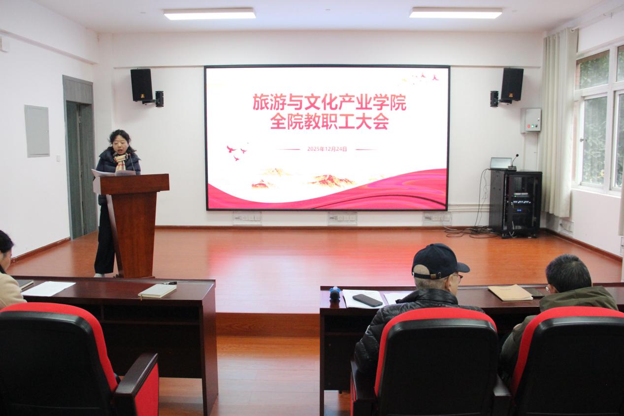 会议首先开展教职工政治理论学习,集中传达学习省委十二届八次全会和市委十四届八次全会精神。会议强调,要把学习贯彻全会精神作为当前和今后一个时期的重要政治任务,切实把思想和行动统一到中央和省市决策部署上来。广大教师要立足立德树人根本任务,主动服务地方经济社会发展大局,推动学院高质量发展与区域文旅产业深度融合,为加快建设文化强省、旅游强市贡献智慧和力量。